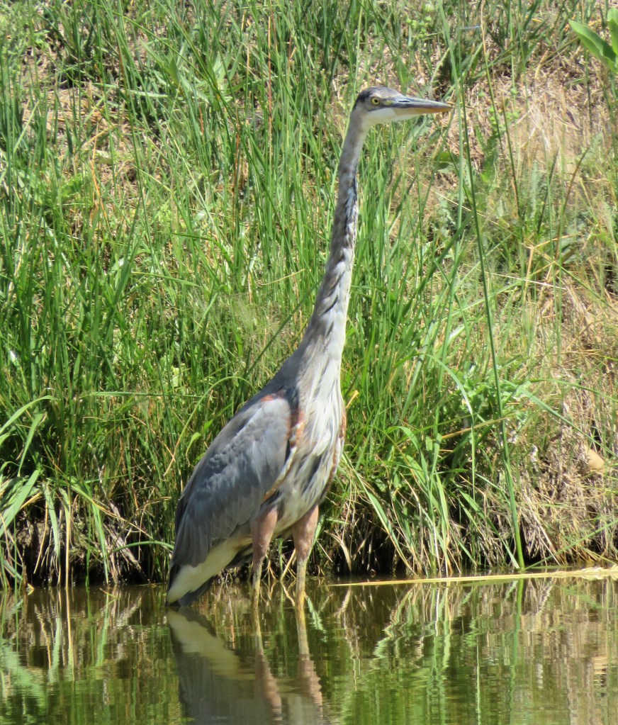 I love my herons, and I get so excited every time I see them, though this year I haven’t seen as many as we normally do. I did see one the other day though. He was playing hide ‘n seek in the reeds. He thought he was hiding from me, but I saw him and I got some got shots of him too. 🙂