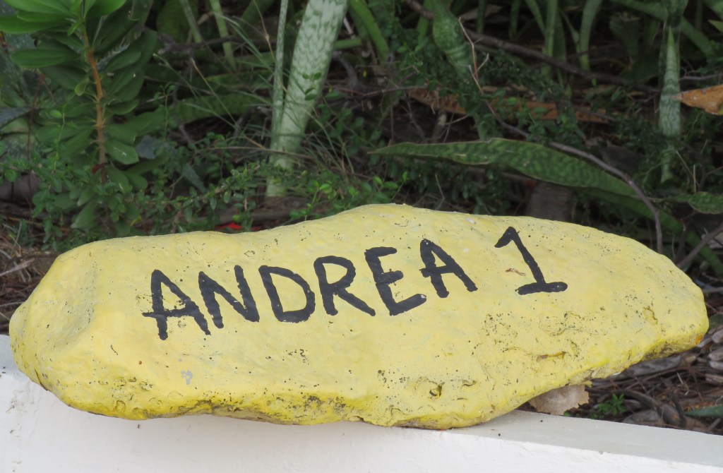 Most of the dive sites look something like this, and the entrances and exits are NOT for the weak, in any way, shape or form. Once you get into the water, all is great, but getting in out and out is very challenging, to say the least. This was one of our favorite sites, Andrea I, and we dived it about 5 times in the course of a week. This was one of the easiest to enter and exit, but it was still an adventure. All of the shore dive sites are recognized by yellow rocks with the names painted on them.
