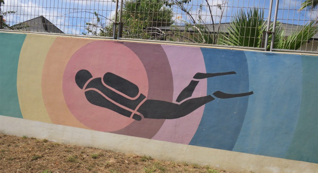 This is a mural that is very representative of the abundant sea life that Bonaire has to offer. Other than the dolphin and the wrong kind of Angel fish they have represented here, we saw everything all the time, and much, much more.