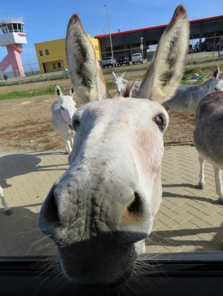 We saw a lot of the donkeys. We also had some very curious ones come right up to the car window, looking for love and looking for whatever goodies we had to share. Unfortunately, we didn’t have any goodies, but we did offer them some much needed love and attention. They seemed very happy with that. These donkeys are right outside the airport.