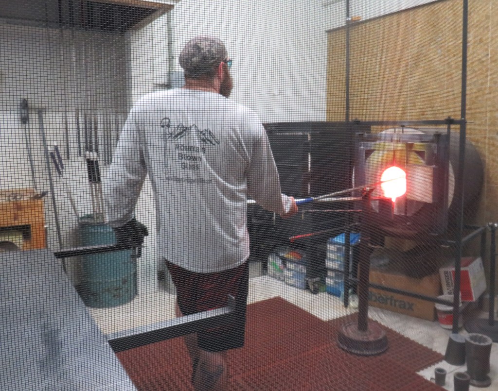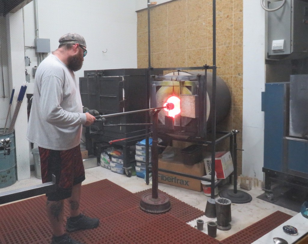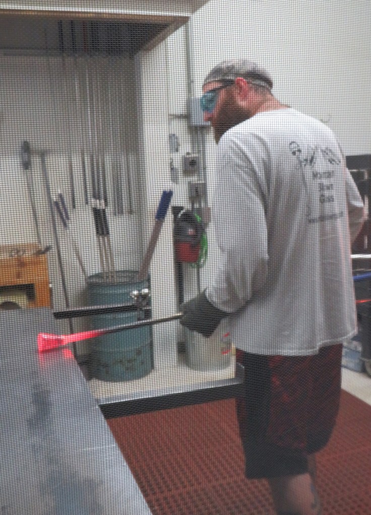 This vase took less than 20 minutes for him to get it made, though it will have to cool in the cooling oven for about 12 hours before it is done.