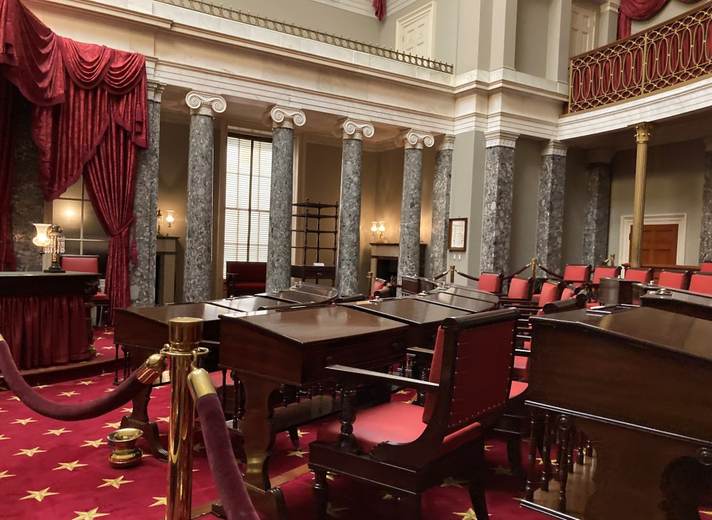 This is the old Senate chamber. This was used until until 1859, when the Senate outgrew this chamber and moved into the new chamber that is still in use today. Because this chamber is no longer is use, other than for historical tours, we were allowed to take pictures. However, we are not allowed to take any pictures at all of the current chamber.