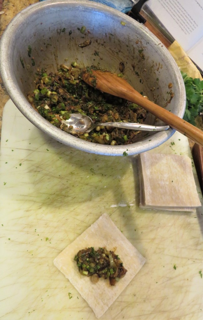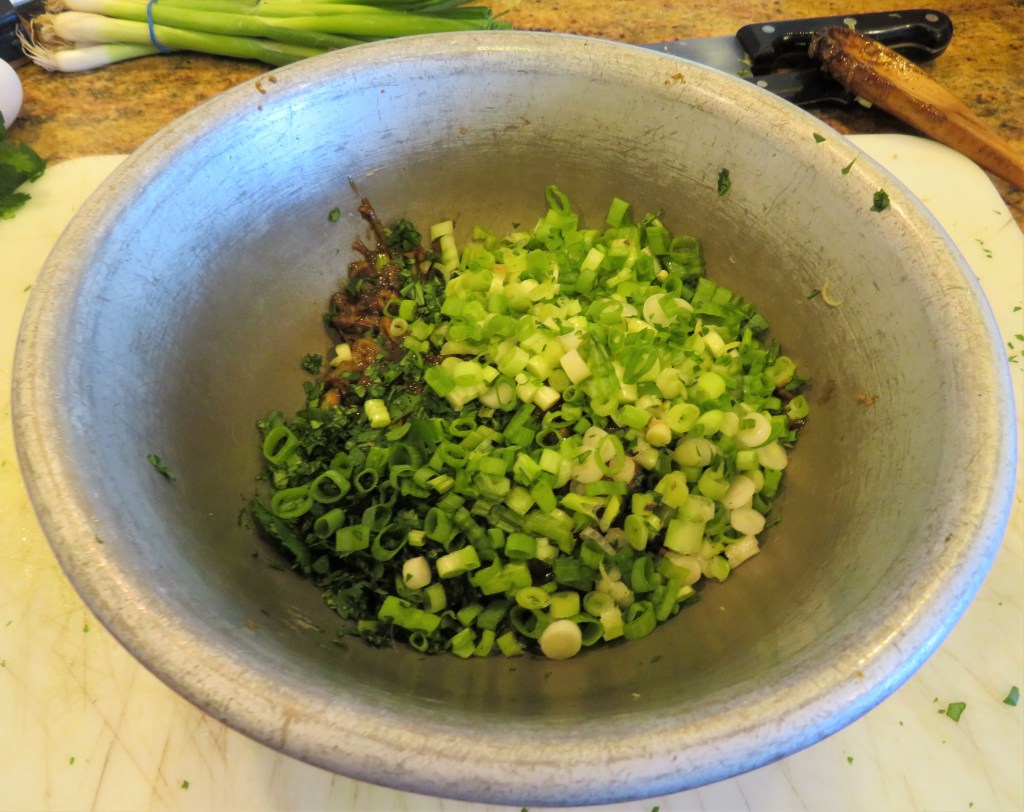 When the mushroom mixture is done, combine it with the green onions and cilantro.