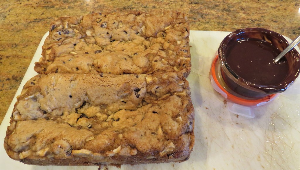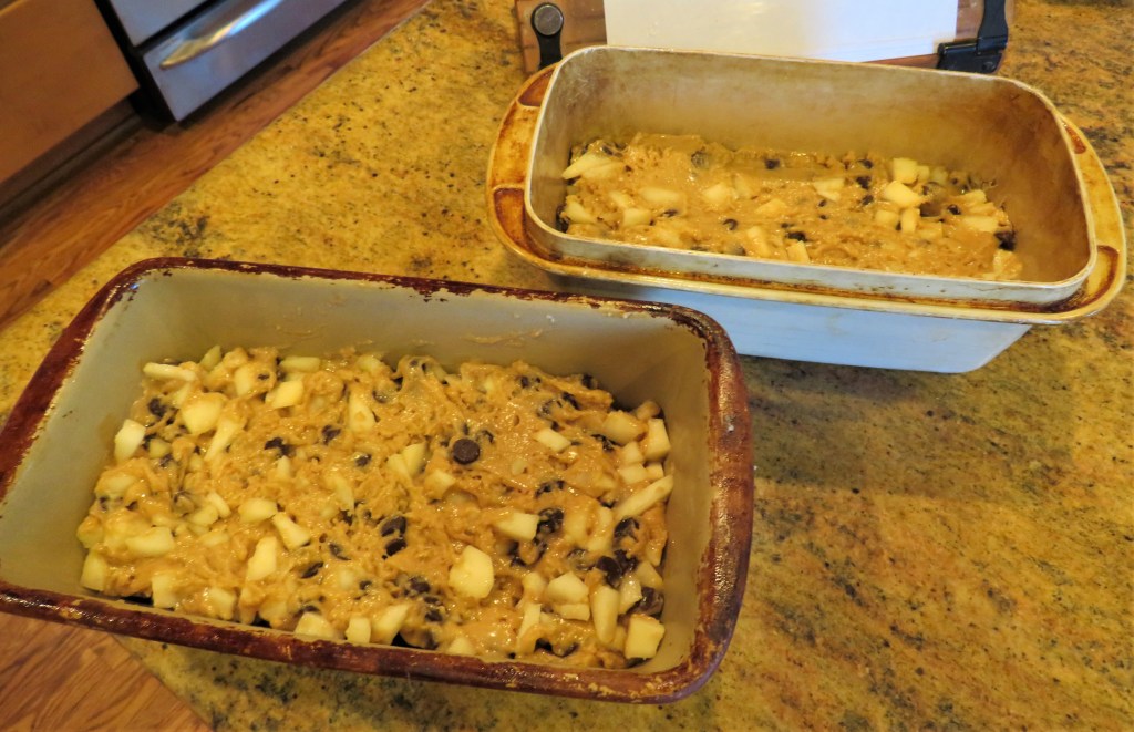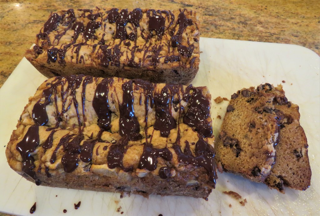 As you know, I get my recipes from all over the place, including a lot of them from following fellow bloggers just like you. Some of you have some amazing recipes. I like to say I am inspired by your recipes, rather than just using your recipes, because, inevitably, I always change them around a bit to make them my own. My latest borrow was from our very own Mia Kouppa at https://miakouppa.com/ for her Pear Chocolate Bread. Thank you for this wonderful and tasty idea. The only things I did differently this time were that I used semi-sweet chocolate chips instead of chopped chocolate pieces and I added a chocolate ganache as a topping once the breads were cooled. So see. I can actually follow directions; for the most part. π