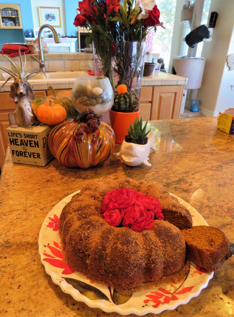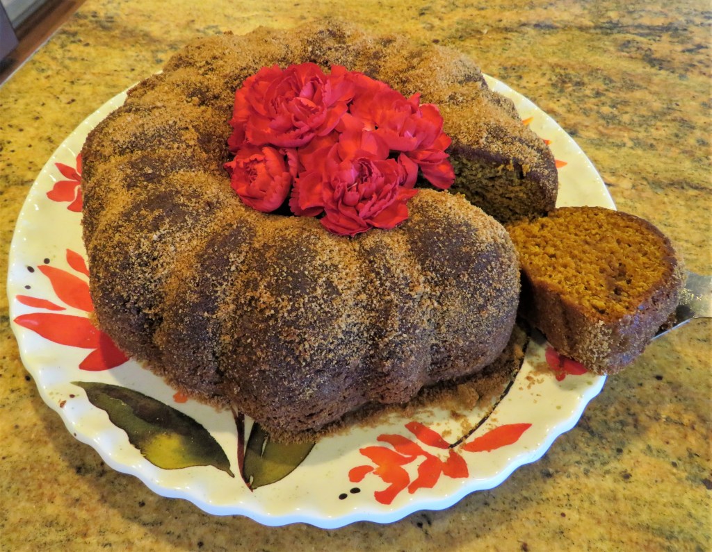 Pumpkin season is still going strong. There are so many good recipes out there and so little time to enjoy them all. I have really been trying my best to accentuate the pumpkin this season too, but there is just no way I can sample all the good pumpkin ideas in just one season. My latest pumpkin recipe once again comes from not one, but two of our very own. I got the idea for my pumpkin churro cake from both My Meals On Wheels at https://beatcancer2010.wordpress.com/ and from Frances at https://beadyarnspatula.com/. Thank you both so much. This cake was a huge success and disappeared in minutes. Of course I made the cake in my own way, but I was most definitely inspired by Frances’ wonderful recipe.
