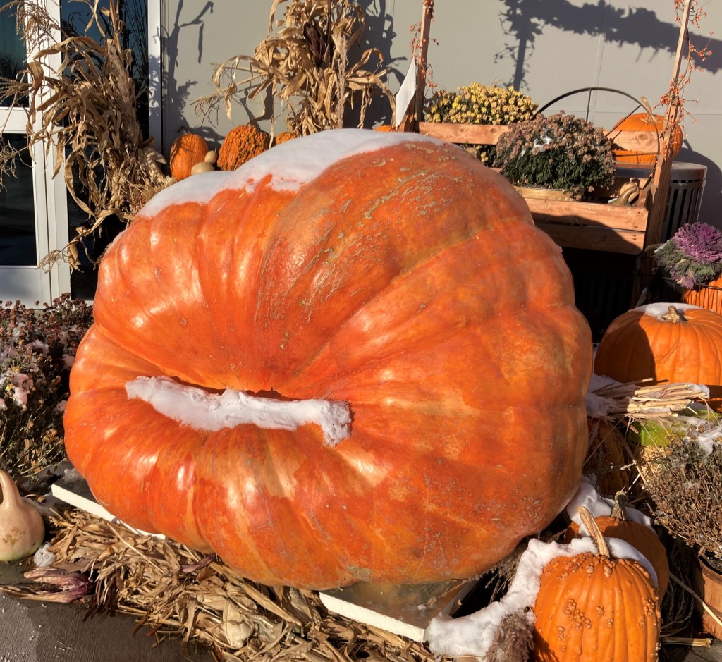 Meet Patches the pumpkin. Patches is just a “tiny” little pumpkin, weighing in at a mere 1432 lbs. That is A LOT of pumpkin pie right there. My friend Lauren didn’t think Patches was a real pumpkin, but it is. π