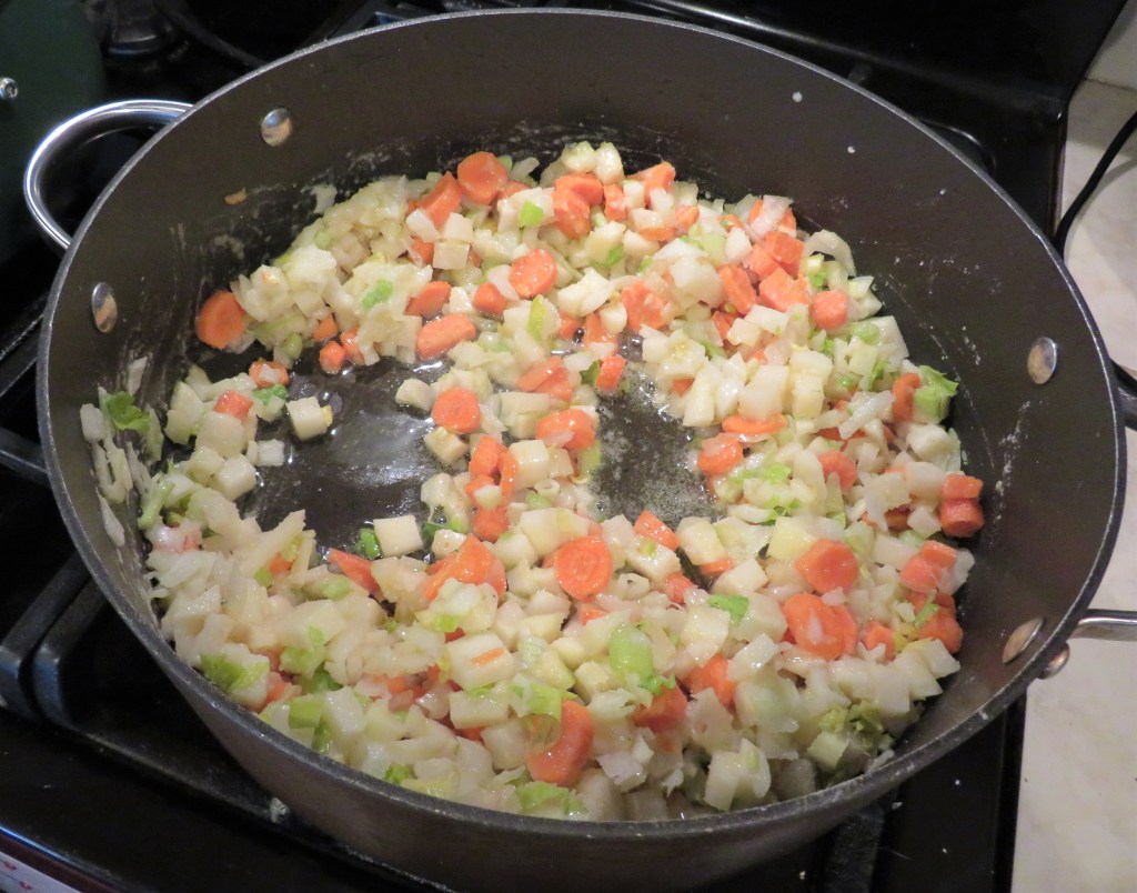 Cook for about 2-3 minutes, or until the roux is the color and consistency you want, then add the onions, celery and carrots and continue to cook, stirring frequently, for an additional 5 minutes or until the vegetables are tender.