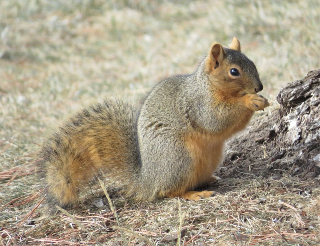 I tried to get more pictures of the two squirrels, but one quickly ran up the tree then disappeared. The other one was having fun posing for the camera.