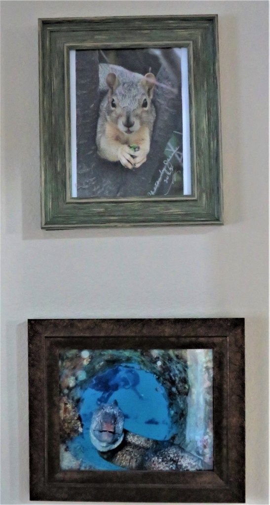 This photo of the eel was taken years ago, on a diving trip to Hawai’i. Larry is in the background waving and the spotted moray in front is smiling at the camera. I entered this photo into a photo contest years ago, liking it a lot but never giving it much thought beyond that, and it won us a free, all expense-paid trip to Cancun for a week. So again, you just never know, but you will never know until you try. My motto is – “Never stop trying. You just may surprise yourself with what happens”.