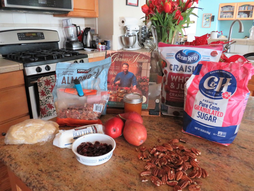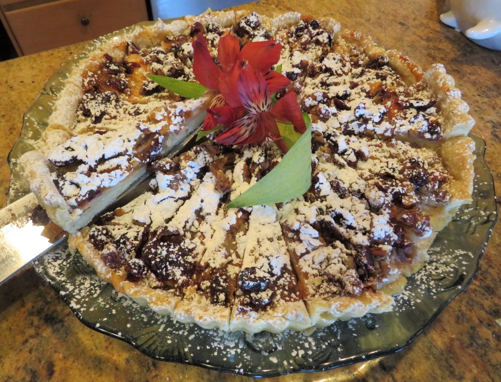 I made an Italian pear and cranberry tart with chopped pecans. It was very good, and quickly disappeared. That’s what I like to see.