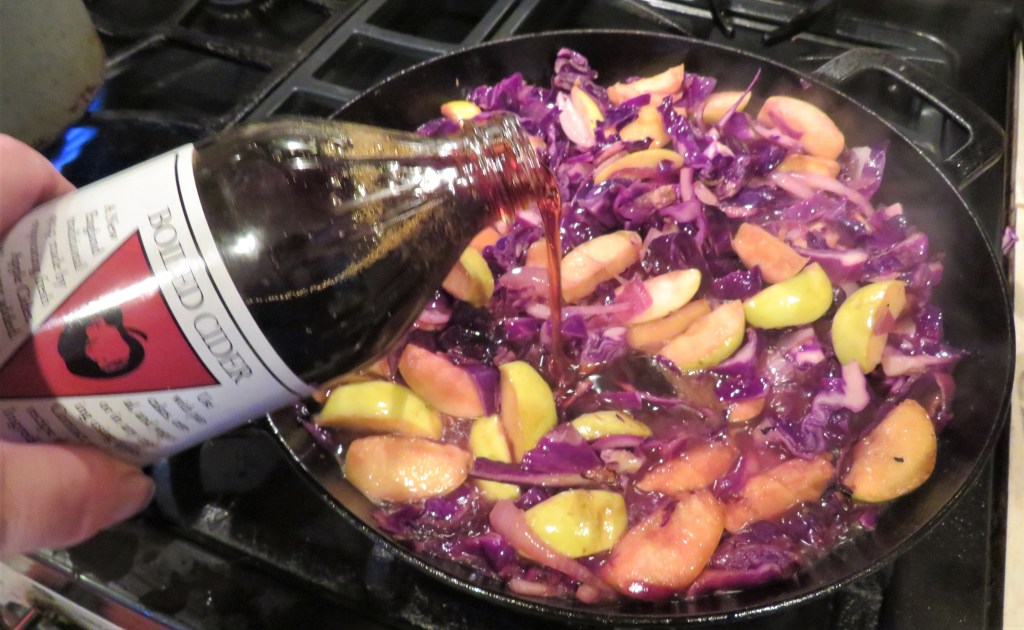 Add both the cider and the cider vinegar and adjust the seasonings as needed.