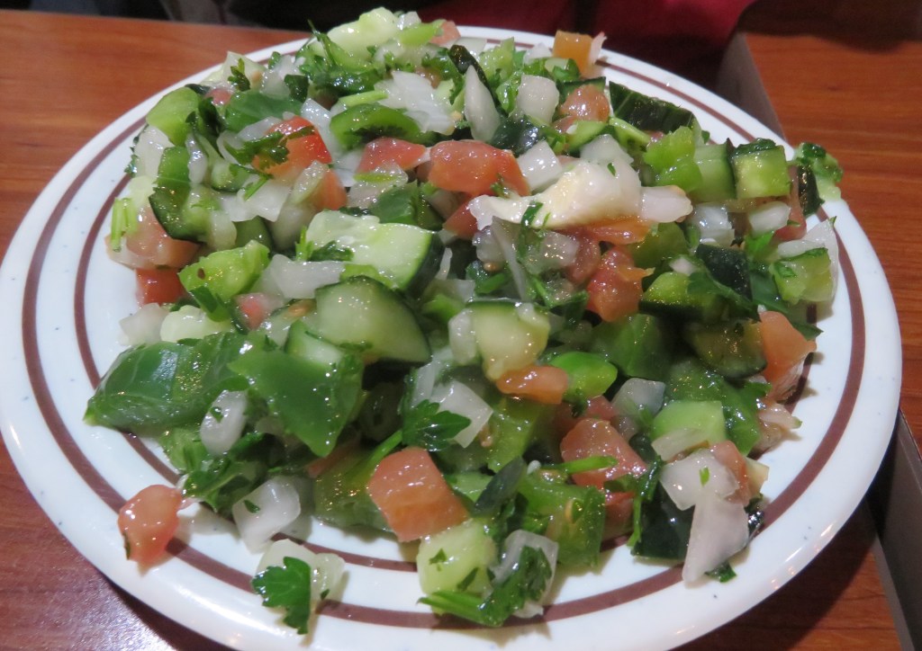 There were a few gyros ordered around the table, some chicken and some beef/lamb. The meat was very tender and flavorful. Some had deliciously crisp, perfectly fried French fries on the side, and Bob order fatoush as a side dish.
