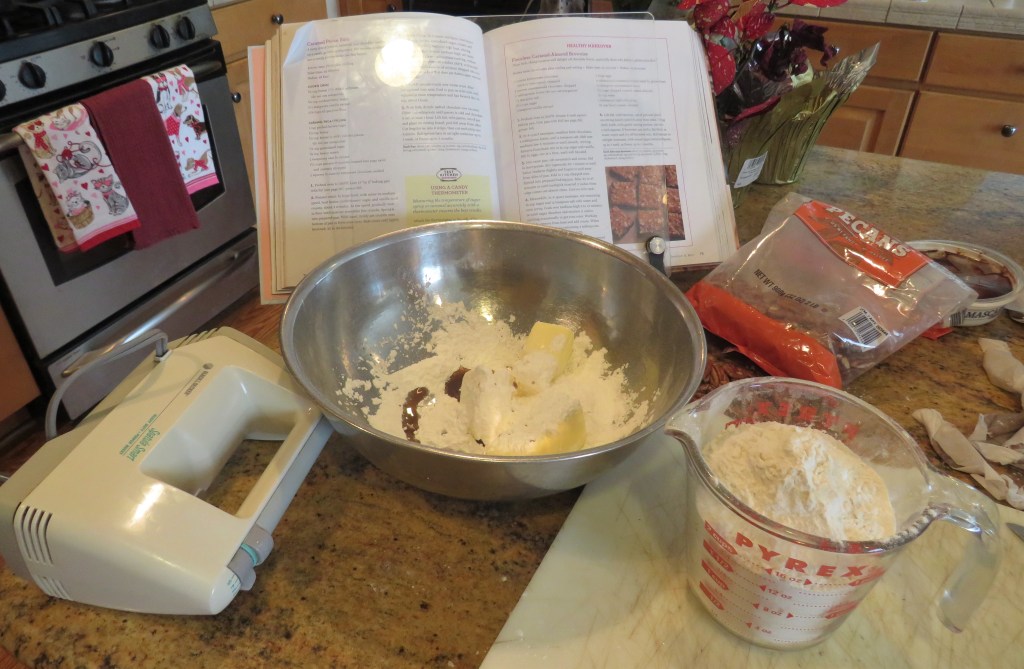 While the crust is baking, coarsely chop the pecans.
