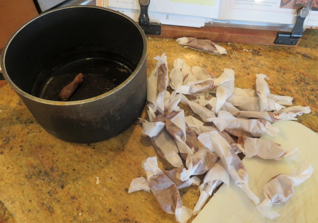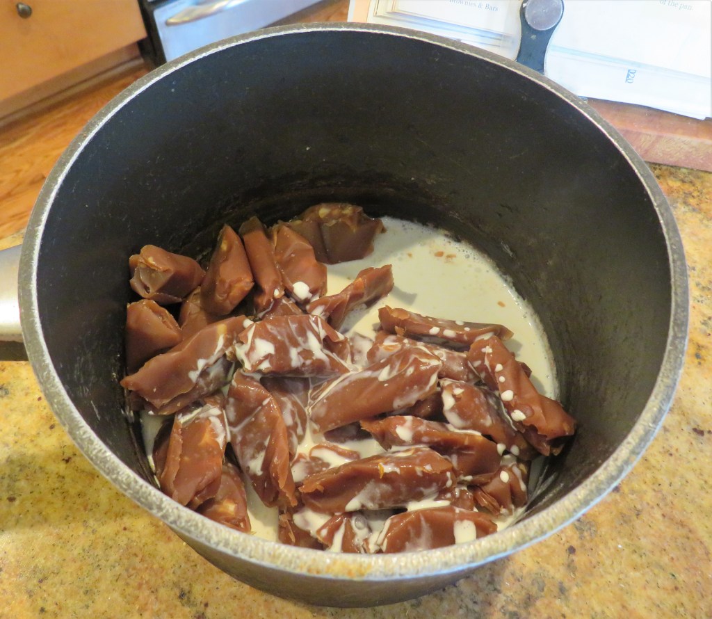 I still had quite a bit of my caramels Video #18 β Making Caramels withΒ Priscilla from my last batch that Priscilla and I made a while back, so rather that making more caramel, I used what I already had. Waste not, want not you know. π