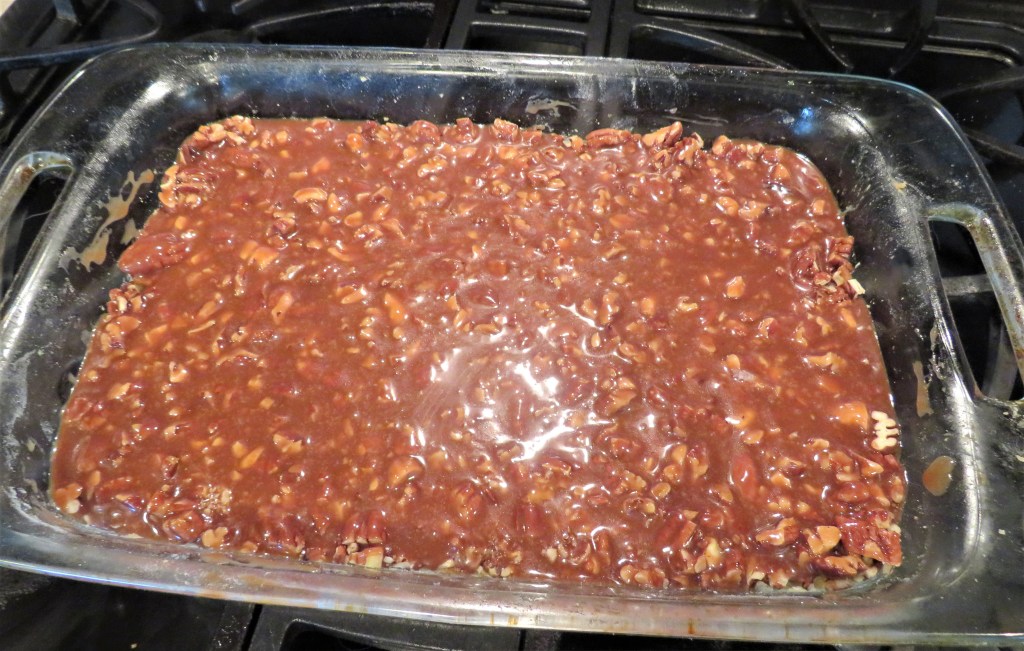 As with anything, there are always many variations, with new creations coming out all the time. I love anything that combines the flavors of chocolate, caramel and pecans. To me, that is a perfect combination. It’s sweet but not too sweet and soft and crunchy and salty all together in one bite. As I said, PERFECTION all in one bite. I turned my turtles into a bar and served them on yesterday’s coffee cart. One gentleman told me they were decadent and sinful, as he was finishing one up. Too “sinful” for church? Maybe, but no one seemed to mind too much. π They all disappeared within minutes of being displayed. The turtle squares were just one of a few popular items featured. I had a lot of goodies when I first put them out, and by the end of service, there was hardly anything left. This is exactly what I like to see every Sunday morning too. π