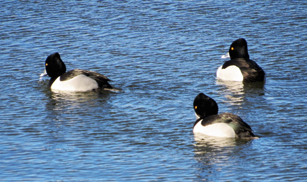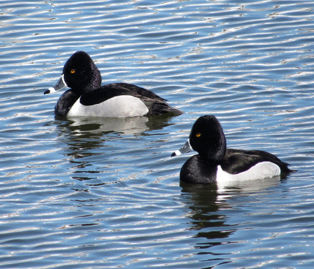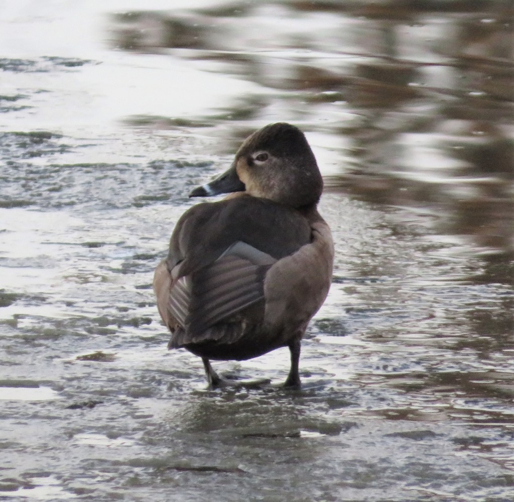 After we got all our burritos done, Mike, Lauren, Larry and I took the dogs out for a stroll around our lakes. It was a beautiful afternoon, the sun was shining and the ducks and geese were out playing on the lakes, as they normally are. I focused on our Ringnecks this time. I see the males quite often, but seeing the females is pretty rare. Sometimes, it’s the little things that matter most.