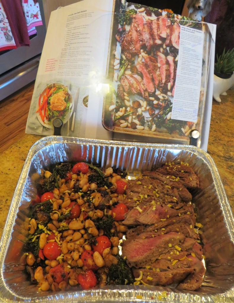 I made them a batch of Mediterranean steak with roasted vegetables and cannellini beans. Roasted Strip Steak andΒ Vegetables I also included a bag of salad and some bread with a little plate of sweet goodies and treats leftover from Sunday’s service.