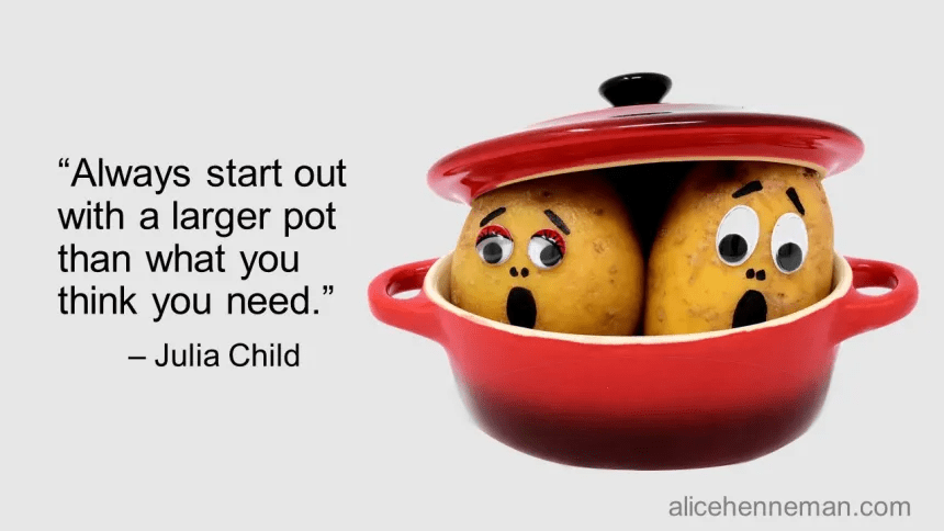 This is very true, especially when I am throwing things together. A lot of little bits of this and little bits of that add up quickly, and you definitely need a large pot to hold it all.