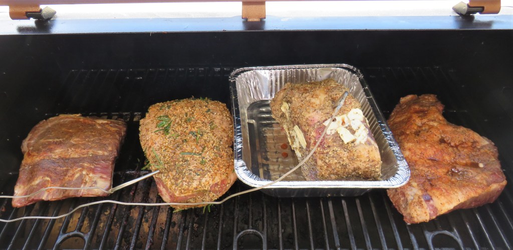 We let the meats marinate overnight, and then Larry smoked them along with a brisket and some beef ribs, filling up the smoker. He did a great job. They came out so good and so tender. They were cooked to perfection.