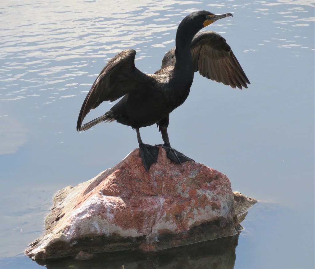 I love seeing the cormorants no matter what. And I am enamored with their beautiful jade green eyes. But I really love it when they spread their wings to dry out. They just look so majestic. There is this one rock in our first lake that seems to be one particular cormorant’s favorite spot. It’s like it’s his throne or his place of power.