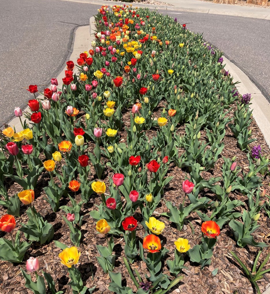 I’ve learned to take a camera of some kind with me everywhere I go. I don’t always carry my good camera with me, especially if I am only running errands or am just out and about, but I getting better about having my cell phone with me (better, not great). I am glad I had it with me yesterday though. The tulips were in full bloom and it looked like a sea of brightly colored tulips. So beautiful.