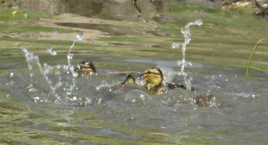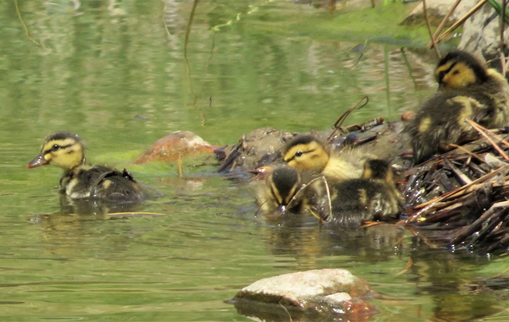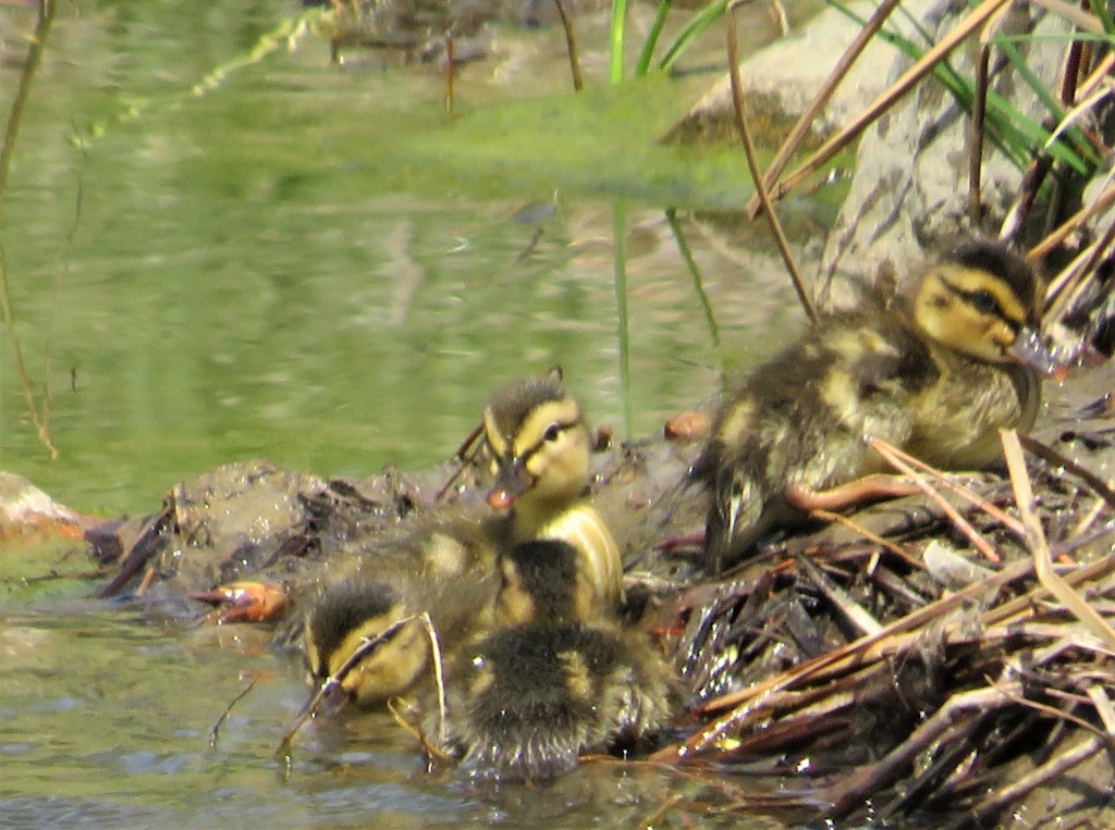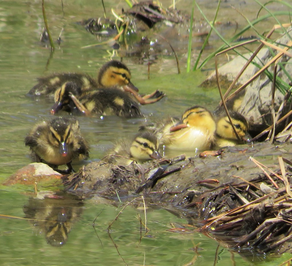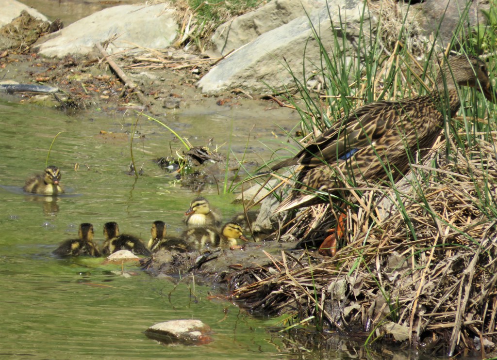 My lakes are now complete. I have my goslings and now I have some “duck-a-lings” too. There was a momma Mallard with eight of her precious and precocious little darlings. They were having so much fun splish splashing in the water. Momma wanted to get out but the babies were having way too much fun. Typical. 🙂