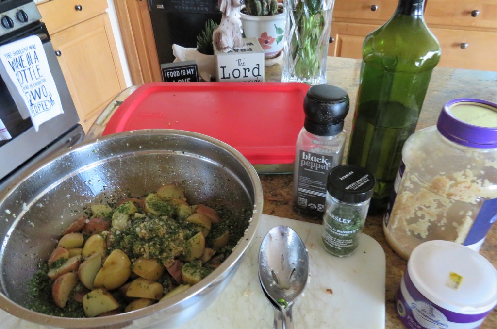 Monday night was the last of our Bible Study group for this season. We will resume again in the fall. Our small but mighty group of friends always has a potluck before we “get to work”. We have a rotating list featuring salads, appetizers, main meals, and desserts. This week it was my week for the main meal. I made a batch of honey mustard chicken and roasted potatoes and vegetables for the group. They were a big success. Even though our group was smaller than usual, there wasn’t much left at the end of the evening.