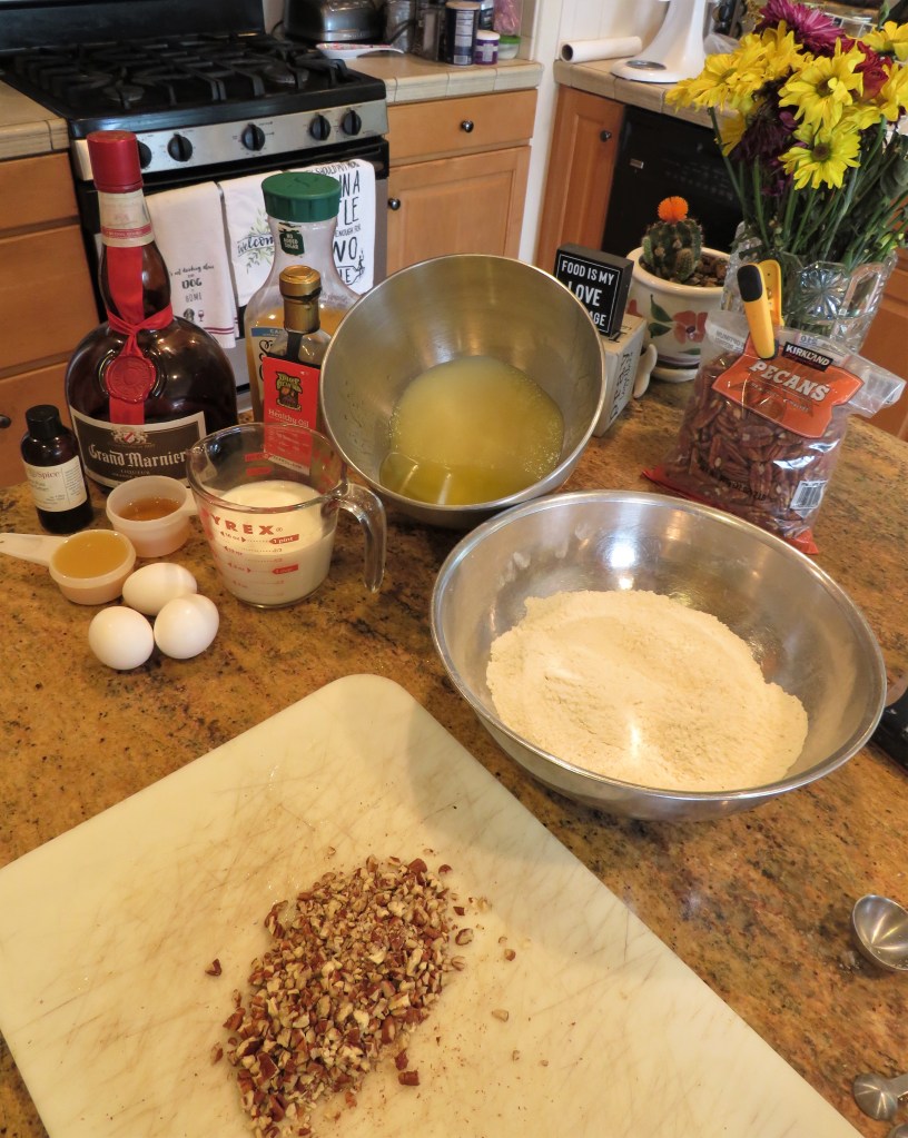 On the first night of Karen and Lori’s visit, not only did I make chicken saltimbocca, Chicken Saltimbocca, but I also made a deliciously light cake made with oranges, Grand Marnier, orange juice, pecans, and olive oil. I also added another secret ingredient that I will share with you as well. In fact, the cake was inspired by this new “secret” ingredient. ๐