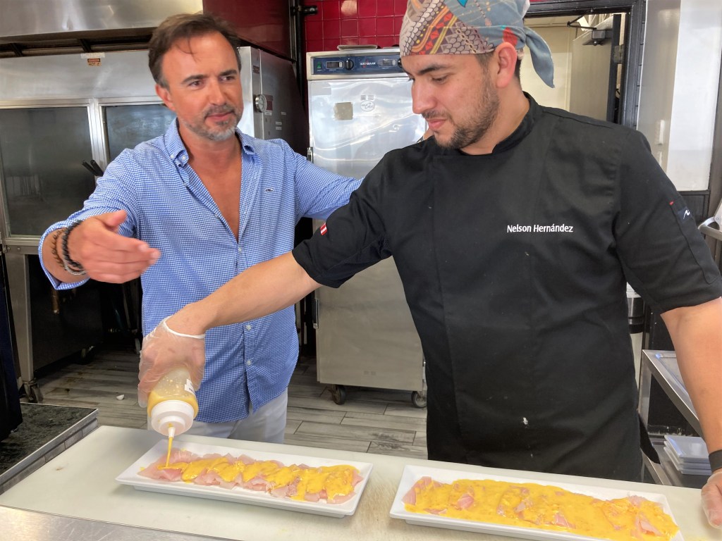 As I was “working” and taking pictures of the restaurant, I introduced myself to Caesar, the owner. He is a very nice man, and was so excited we chose Pollo Lima for dinner. As Chef Hernandez was preparing our special ceviche, Caesar was there helping to explain the dish.