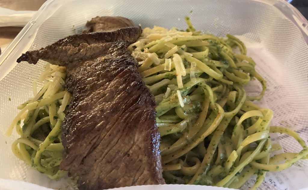 and some Peruvian skirt steak with pasta pesto.