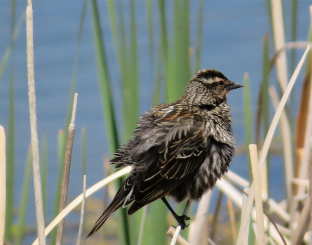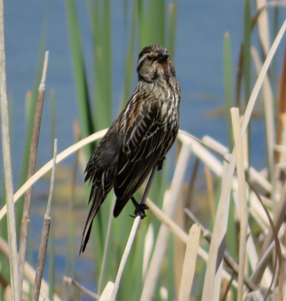 That being said, with all this rain, and thunder and lightening, I have not been out walking as much as usual, which means not a lot of new pictures. Fortunately, I have a ton of pictures from previous walks that I can share. Today, I am sharing a juvenile European Starling, at least that’s what I think it is, on the reeds.