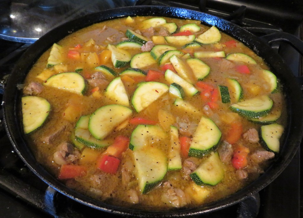 You can serve it as is, like a stew, or you can serve it over rice, farro or other Middle Eastern grains, or potatoes. Either way, this is a delicious one-dish meal that you’re going to love. You can change the vegetables around too. I was going to add eggplant, but my eggplant wasn’t looking so good, so it got tossed, into the bin and NOT my dish.