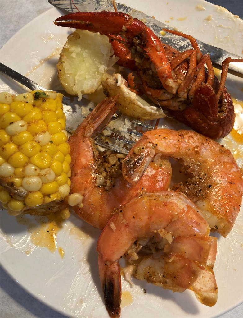 And then we ordered a Cajun shrimp and crawfish boil. It was loaded with large prawns/shrimp and crawfish, boiled together with corn and potatoes in a very flavorful spicy Cajun sauce.