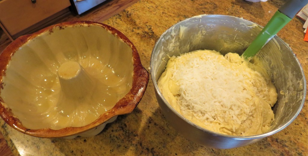 This deliciously tropical lime and coconut cake was a HUGE hit today. So many people commented on it and asked for the recipe. So, here it is. As you can see, I mixed the lime with the coconut and baked it all up.