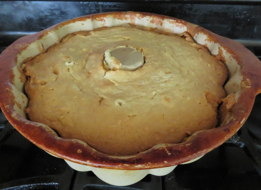 Bake for about 1 1/2 hours or until the cake is set and a toothpick comes out clean when inserted in the middle.