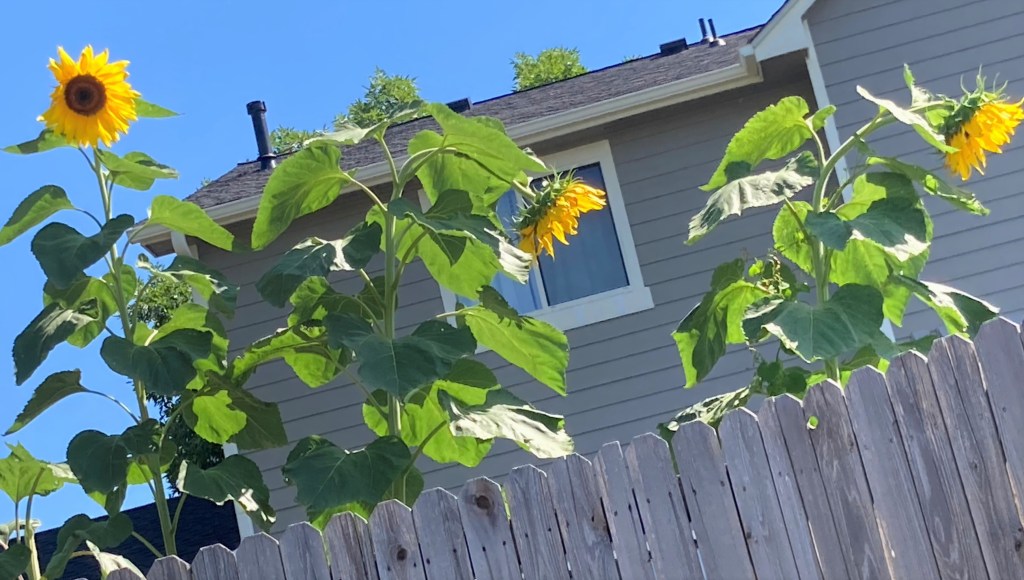 These flowers were looking at the world over the fence, just saying hi. These are not my sunflowers, just some I saw on my adventures.