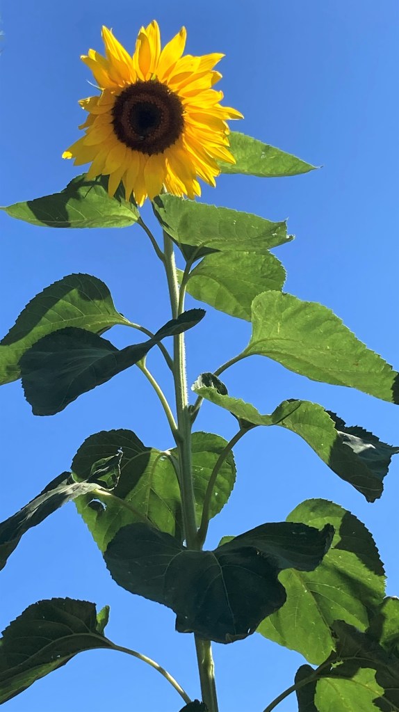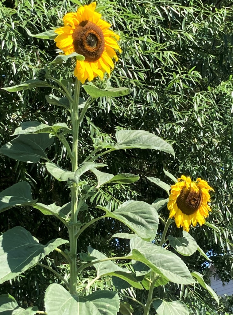 Our sunflowers are in full in bloom and glory right now. We have many different varieties of sunflowers too. They are everywhere. Ours in our backyard are in proud display as well. But these giant sunflowers really caught my eye. They must be about 12 feet tall, and just look so happy. Sunflowers are always such happy flowers. 🙂