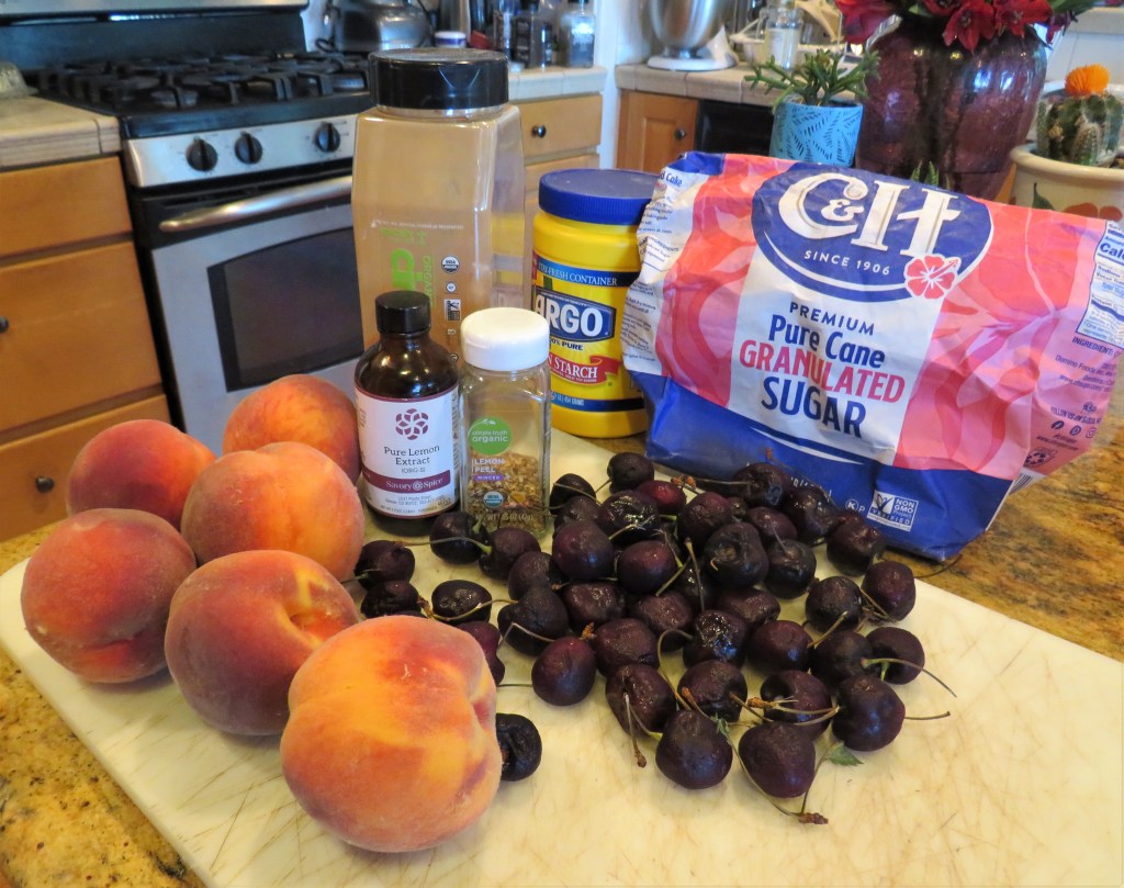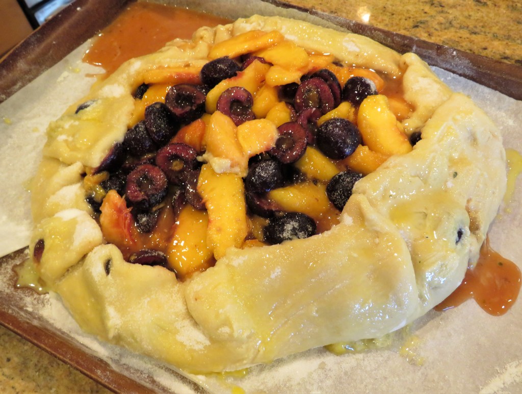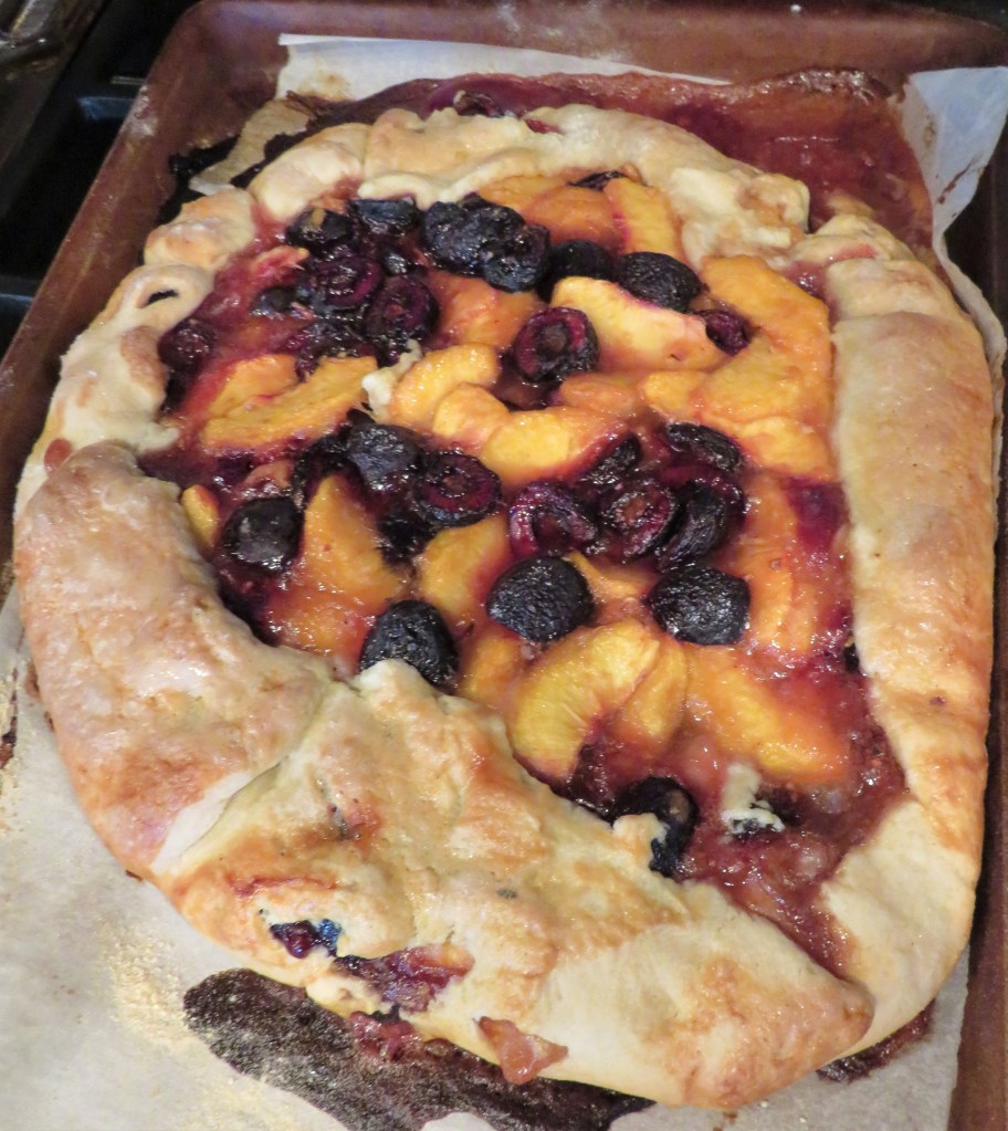 When Lauren and I went to the Farmers’ market the other day, I bought a 1/2 box of Palisade peaches. From The Farmers’ Market I will be using them again for something else this weekend, but the first thing I made with them was a peach and cherry galette.