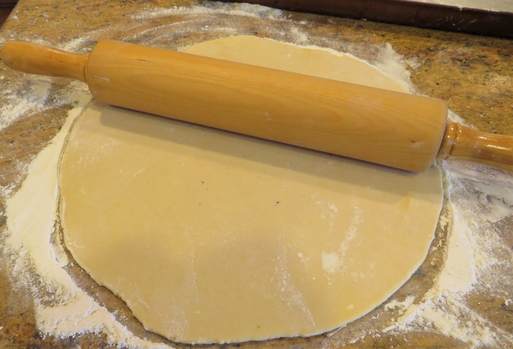 Let the dough set in the refrigerator for at least 30 minutes before rolling it out. Roll out the dough into a thin circle. Then place it on the prepared pan.