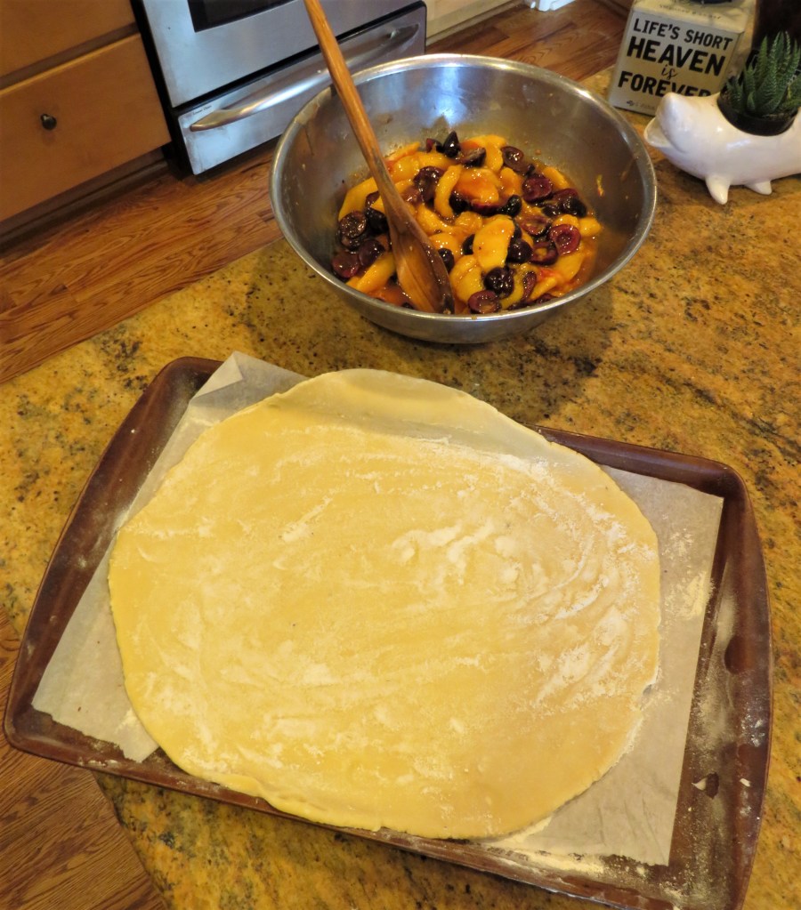 I made my dough first, which is my basic go-to pate sucre, or sugar dough. Peach and Blueberry Galette Then I made the filling.