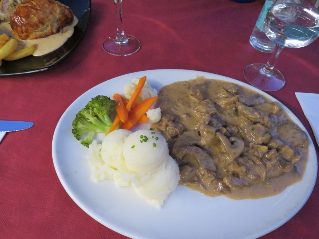 Larry ordered beef stroganoff and I ordered pork wellington in a Dijon mustard sauce. Both were very good and hit the spot.