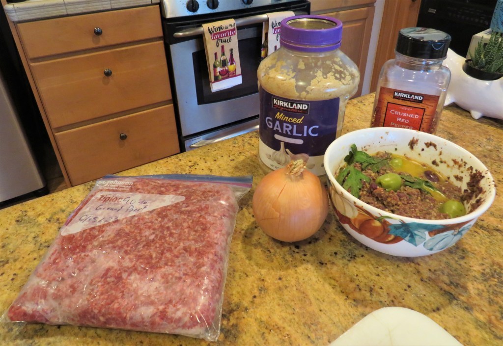 We eat tapas on a fairly regular basis anyway, but having just come back from Spain, tapas were a definite must. One of the tapas dishes I made were some Spanish meat pies. I had seen them in one of my cookbooks I just brought back from our trip, but I really made up my own recipe. That’s one of the main reasons I like cookbooks with pictures. The pictures inspire me, but I can figure out the rest out on my own.