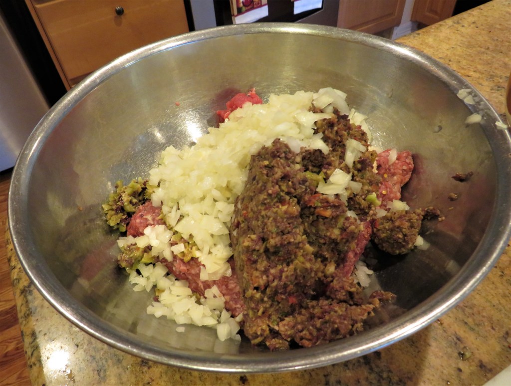 I started off with my basic go-to dough. The Empanada Party β Part 1 β BeefΒ Empanadas These meat pockets are basically empanadas, just in a different shape. I also used my mixed olive tapenade in the filling as well, but chopped mixed olives with a little lemon juice will work just fine too. Olive Tapenade I mixed the tapenade together with about 2 lbs of ground beef and about 1 lb of beef chorizo, along with 1-2 TBSP garlic, 1-2 tsp red pepper flakes, and 1 onion, diced fine. I also threw in about 3 TBSP of flour towards the end to help thicken the filling up a bit.