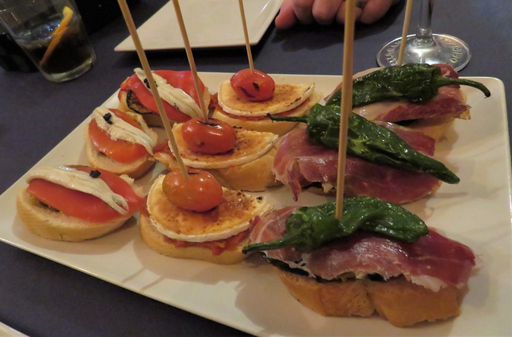 At The Traveler’s Nest, we all started off with a little sweet red Vermouth, or Vermut Rojo, and some pinchos (Spanish) or pinxtos (Basque) styled tapas. There are four main styles of tapas – 1) The pinchos or pinxtos, 2) cheese and/or charcuterie platters, 3) hot and 4) cold. I love them all.