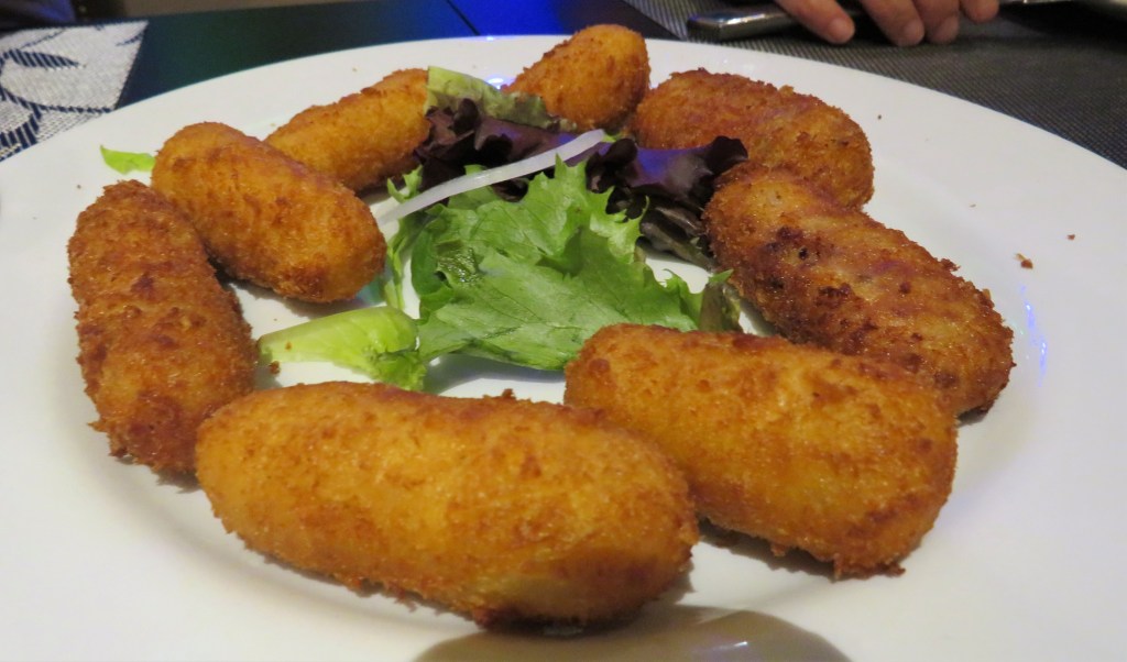 After drinking Catalan style, our fried salted fish came out and we passed it all around for everyone to sample.