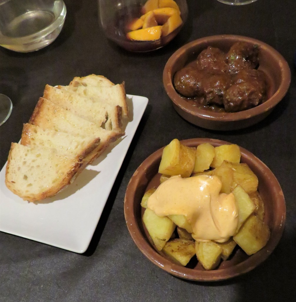 Here we sampled some albondigas (meatballs), pane (bread) and patatas bravas, with sangria.