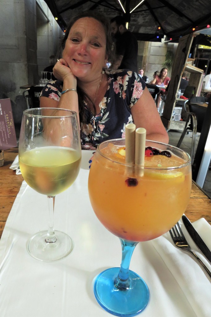 Our last Spanish meal in Barcelona came after yet another very full day of adventures. We ate in the center of Las Ramblas in one of the Platjas. While we waited for our food to arrive, we needed to unwind and relax with some cool, refreshing libations. After all, we had a very full trip with lots and lots of fun adventures.