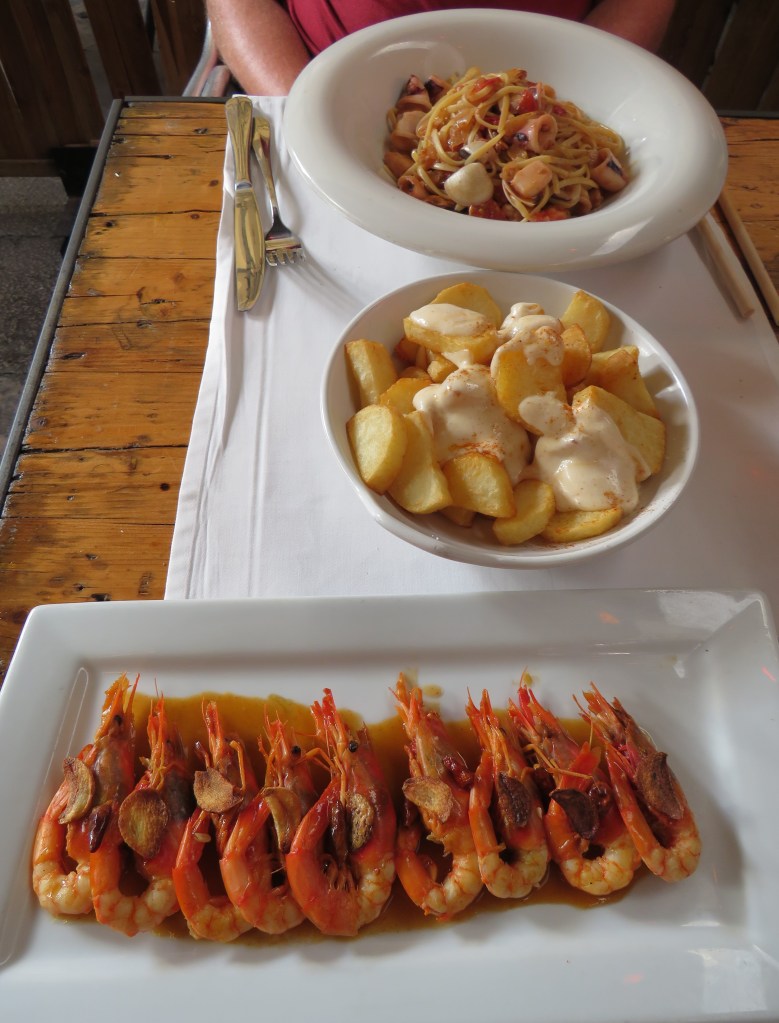 We ordered another version of pasta del mar, patatas bravas and some garlic shrimp or gambons de ajillo.