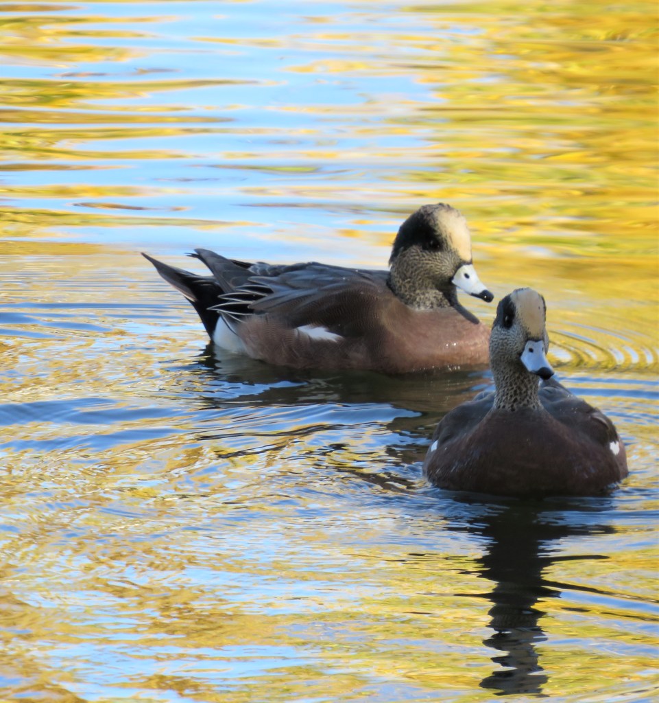 I love seeing the variety of wildlife and water fowls that like to call my lakes home. Many of our animals are seasonal and they come and go as the seasons change. It is like a revolving door of different visitors coming in for a long extended visit or stay. This time, I am happy to say, my American Widgeons are back. Hopefully they will stay with us for awhile before taking their leave once again.