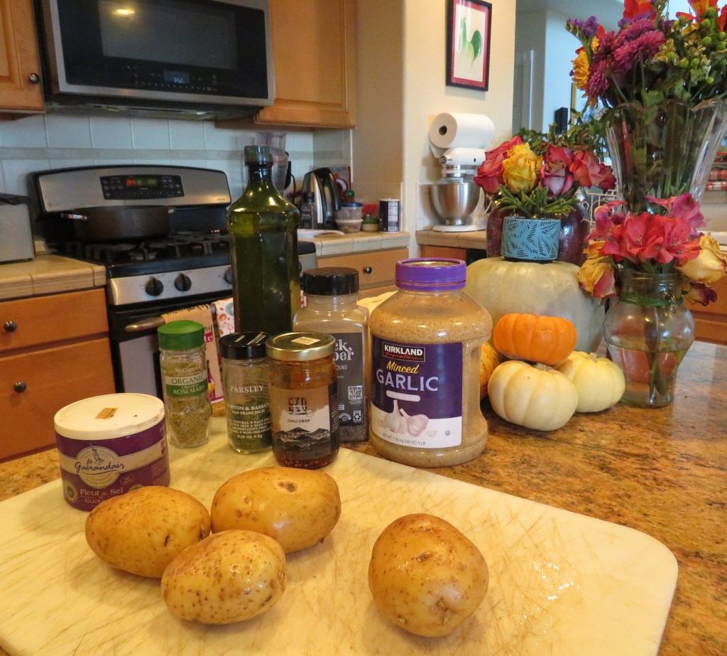 Lately, I have been using a lot of chili oil with roasted chilies in just about everything. I love the little extra kick it adds to spice things up a bit. The addition of the chili oil really brought this classic potato dish to life in a whole new way too.